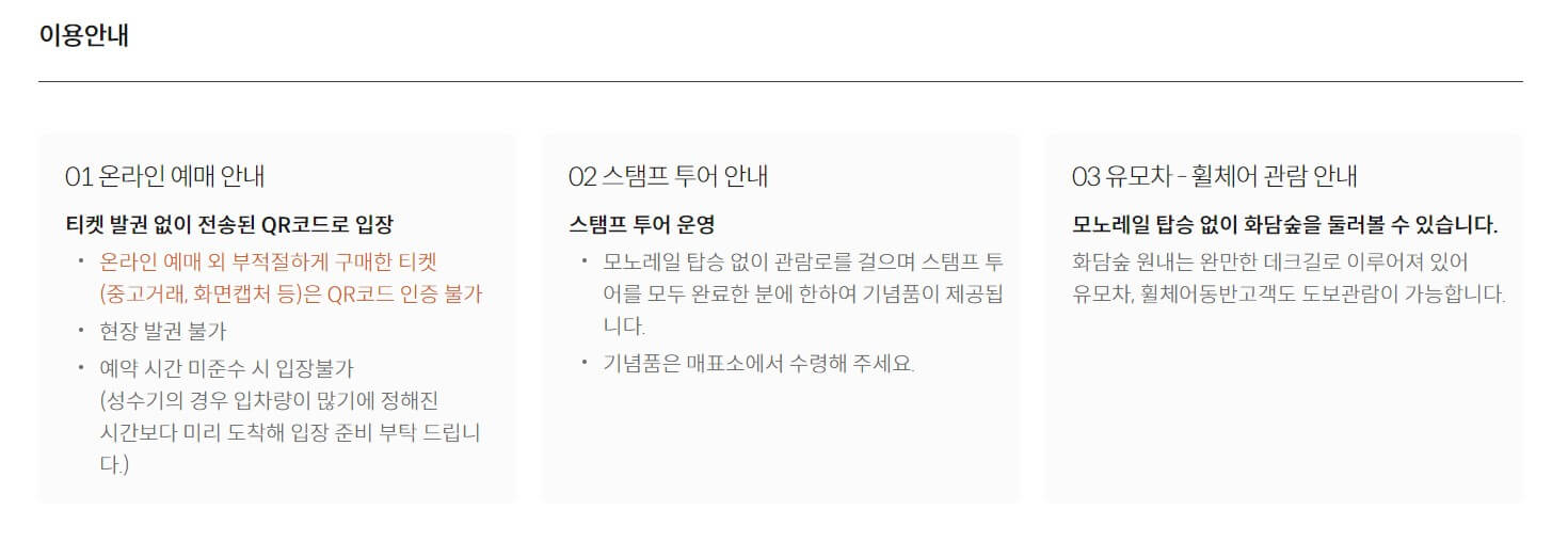 1. 이용방법 : 온라인 예매만 가능