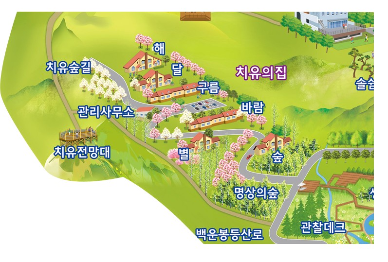 - 힐링 클래스 → 치유의 집에서 휴식 → 피크닉 존